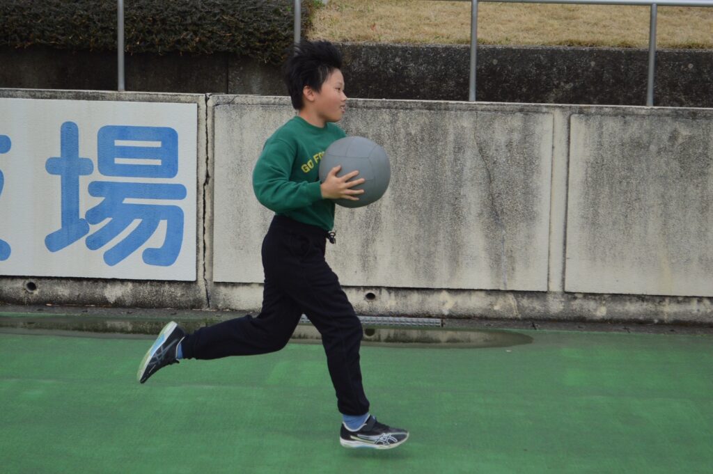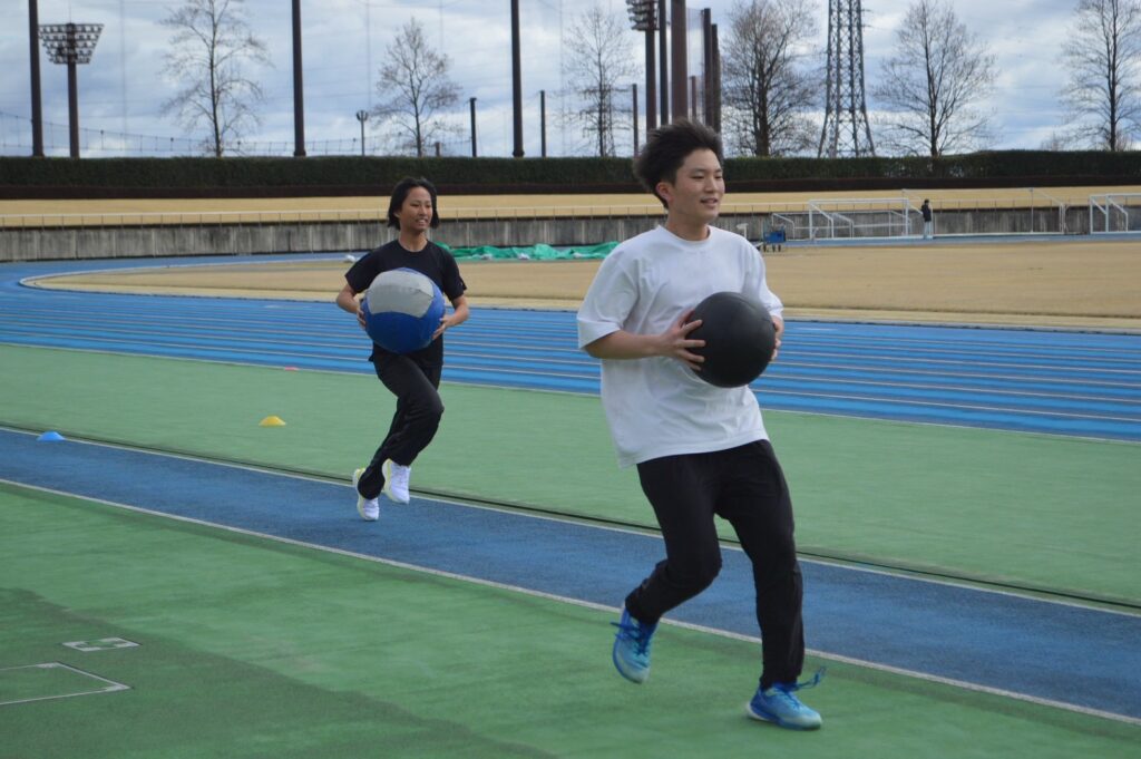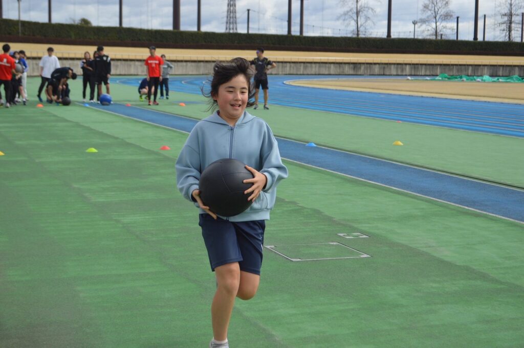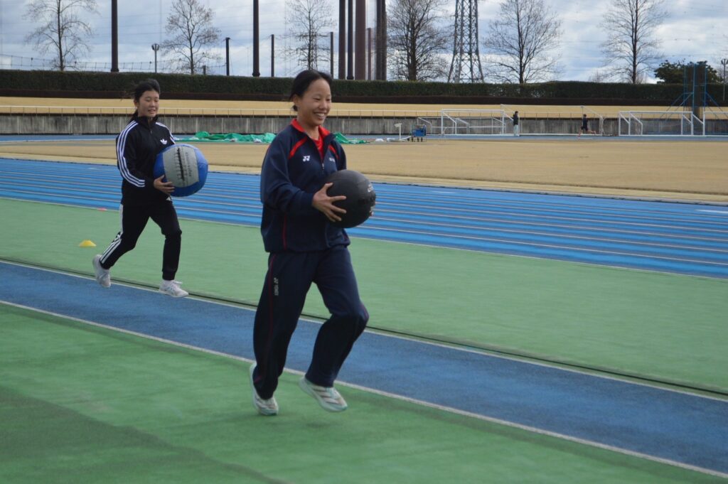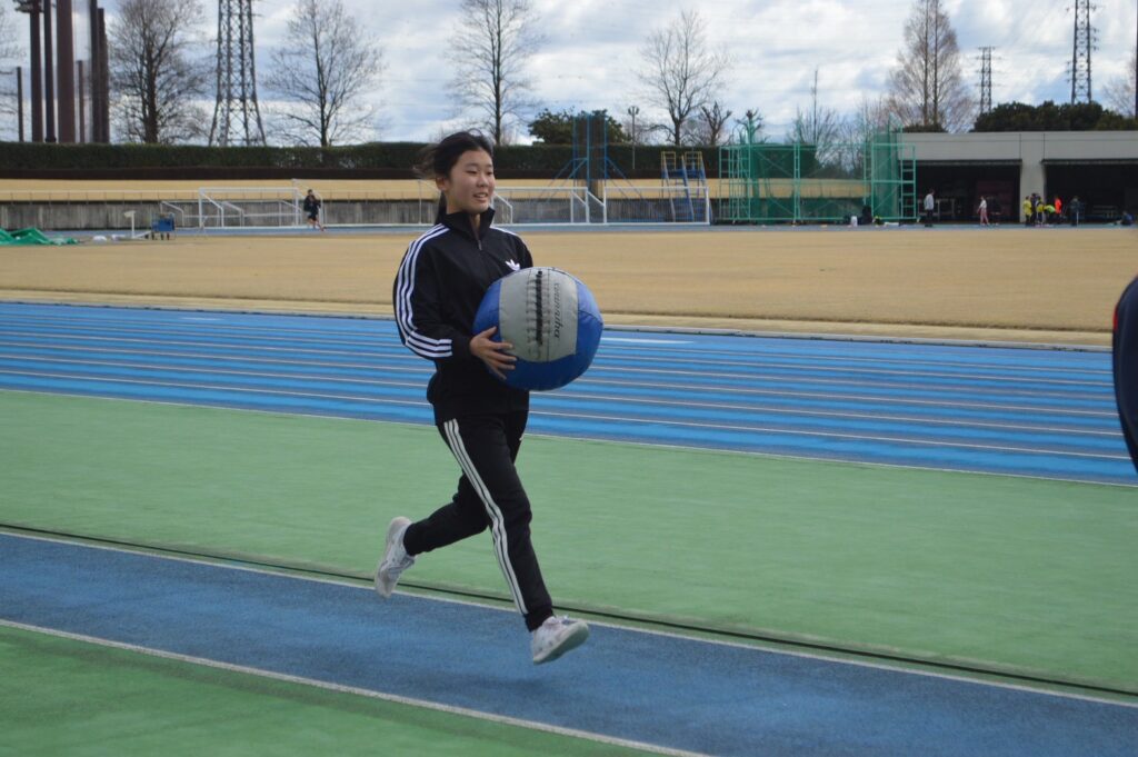 さらに、楽しさもありつつ全身を使えるメディシンリレーも行い、良い雰囲気の中でアップを進めることができました。