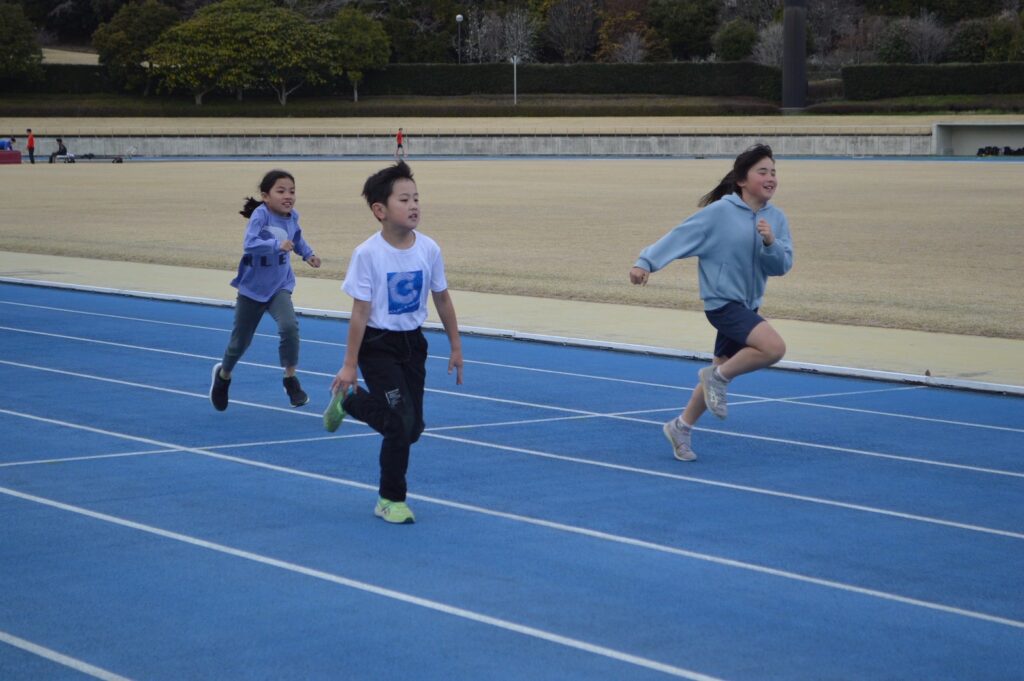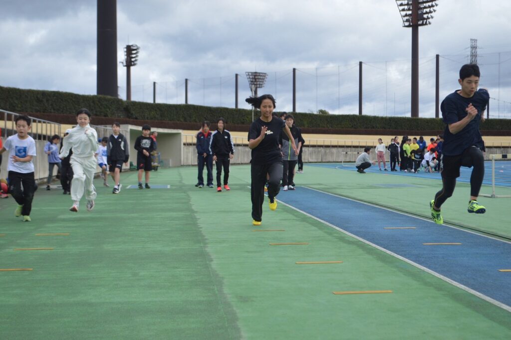アップの後は、かけっこクラスとクラブに分かれてドリル練習を実施。