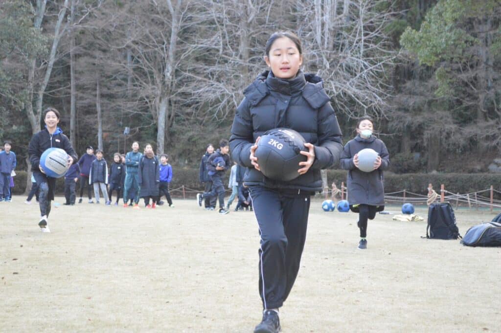 午後のメインは、メディシンボールリレー