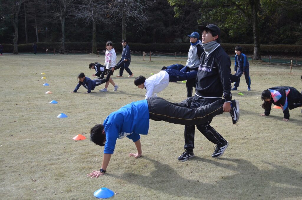 この時間は、身体を温めるだけでなく、合宿の仲間になるための大切な時間でもあります。